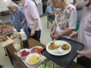 2021.08.23 日々の様子 夏祭り一日目✨ 本日から三日間、夏祭りを開催しています! 昼食はおにぎり、焼きそば、唐揚げ、サラダなどをバイキング形式で行ないました。 皆さんいきいきとした表情で、楽しそうにお皿に盛りつけていました☆ 午後からは屋台ゲームということで、射的とピンポン玉すくいをして楽しみました。 明日からの夏祭りも楽しんでがんばります!