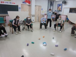 レクリエーションではボッチャ風ゲームをして楽しみましたよ。
