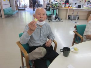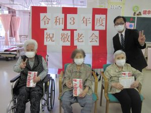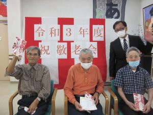 2021.09.21 日々の様子 敬老会🌼 今週は敬老会週間です。 お客様に日々の感謝の気持ちを込めて、賀状と 記念日のご長寿タオルをプレゼントしました。 これからも元気でセンターへお越しくださいますよう、職員一同お待ちしております! おやつは手作り芋羊羹です😀