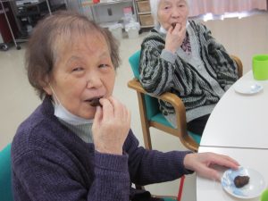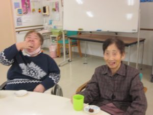 2021.11.07 日々の様子 先月作った干し柿をおやつにいただきました😊 天気のいい日 お日様に当てたおかげで、甘~い干し柿が出来ました🤗 ちょうどよい硬さでした!中も柔らかくすごく美味しいと大好評でしたよ🌟 来年もまたたくさん柿が実ってくれるといいですね!