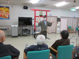 獅子舞が登場し、お客様一人一人に挨拶をしました。