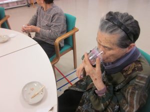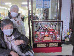 2022.03.04 日々の様子 🎎ひな祭り会🎎 玄関にひな人形や春の花を飾り春らしくなりました🌸 ひな祭りレクリエーションに参加され、楽しまれました! おやつは手作りの桜餅と桜のお茶をいただきました🌸 桜がとてもいい香りで、お客様からも絶賛でした☆