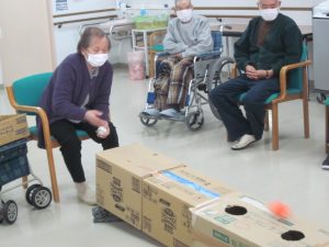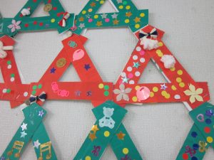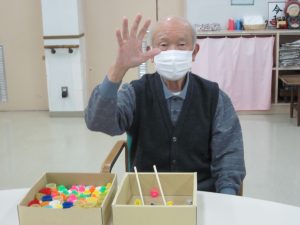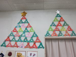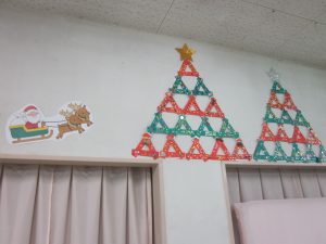 2022.12.04 日々の様子 12月に入りぐっと寒くなりました。 センターでは皆さんとクリスマスに向けてツリー作りをしました🎄 キラキラのシールや飾りを貼って素敵な作品が出来ました! 余暇時間やレクリエーションで楽しまれています! 穴にボールを落とすドボンゲームに集中 体操も毎日頑張っています。
