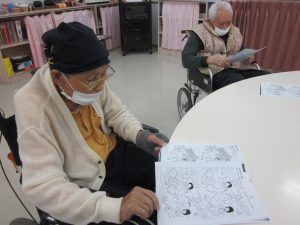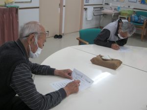 余暇時間や脳トレーニングでは皆様、集中して頑張られています。