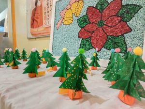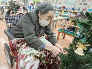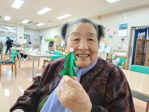 2024.12.30 日々の様子 クリスマスに向けて☆ クリスマスに向けて、ツリー作りをしました。 お客様、お一人、お一人が飾りを工夫し、素敵な作品が出来上がりました。 クリスマスツリーも飾りました☆☆