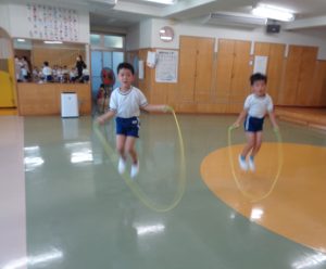 2021.08.20 日々の様子 なわとび会 今日はなわとび会でした。5歳児のばら組さんで一番多く跳べた子は、なんと187回でした!頑張りましたね。お家でも縄跳びをして、毎月回数を増やしている子が多いです。