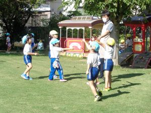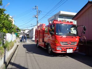 お昼に花の手入れをしていると、保育園前に消防車が来ました。玄関前の消火栓の点検でした。ちょうどお昼寝の時間でしたので、子ども達は見られかったのが残念でした。
