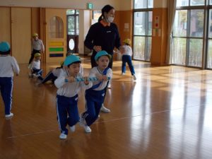 3歳児あやめ組は”障害物走”と”玉転がし”。