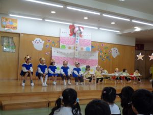 たくさんのお兄ちゃん、お姉ちゃんの前でステージに上がっても、手をパチパチしたり、ケーキ(作りものですが…)に手を伸ばしたりする1歳さんもいて、とてもかわいかったです。