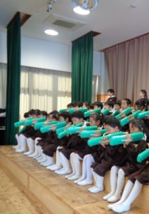 コロナ禍前までは新潟テルサで行っていた音楽会で発表していた合奏も、おたのしみ会で発表しました。