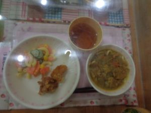 そして、今日の給食はばら組さんのリクエストのカレーうどん汁でした。