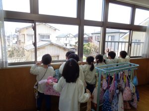 お部屋が変わり、窓のから見える景色も変わったようです。クレーン車もいたようでみんなで眺めていました。