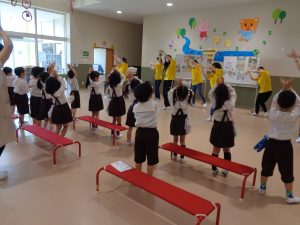 今日はばら組(5歳児)さんが、ひまわり幼児教育専門学院で行った防犯講座に行ってきました。