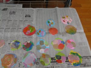 5歳児のばら組さんでは「〇〇色と◇◇色を混ぜると▢▢色になった!!」「〇〇色が多かったから▢▢色だ」などと色の変化にも気づきそれを楽しんでいました。