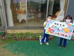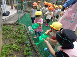 2022.06.20 日々の様子 ゴーヤ大きくなあれ 今年も新潟市開発公社さんの緑のカーテンプロジェクトで、ゴーヤの苗をいただきました。 園庭の入り口脇がグリーンカーテンの予定地です。 植えた翌日、6月17日の苗はまだまだ小さいです。これからどんどん大きくなります。 つぼみ組(1歳児)のおともだちがお水をあげてくれました。 各クラスでしている野菜栽培ですが、このゴーヤはつぼみ組さんの担当です。園庭の入り口にあるので、すぐに成長を見たり、水やりができるからです。 みんなのために頑張ってくれています。ゴーヤも喜んでいるかな。