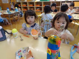 お誕生会の今日のおやつはオレンジシャーベットでした。