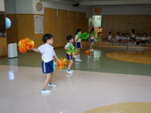 2022.08.02 日々の様子 ばら組 マーチング 今日も外プールを楽しみました。大きな木の陰でいい日陰になって気持ちいい外プールです。 年長さんは、マーチングの練習をしていました。 ポンポンと ガード かっこよくなってきました