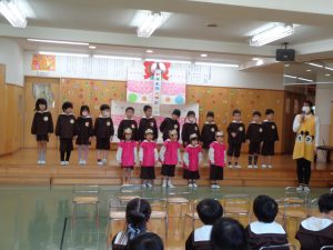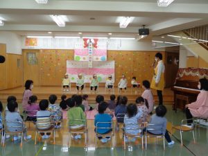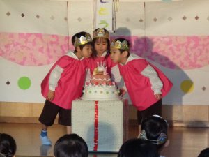 2022.10.27 日々の様子 10月のお誕生会 今日は10月のお誕生会でした。 0,1,2歳児さんのお誕生会、 2歳になったお友だちも、パチパチと手をたたいて喜んだり、ろうそくでのキャンドルサービスもとても喜んでくれていました。 3,4,5歳児さんでは、お誕生会が嬉しくて嬉しくて仕方がないお友だちや、とても緊張しながら立派に堂々と話していた4歳になったお友だちさんたちで、とても楽しそうでした。 みなさんおめでとうございました。