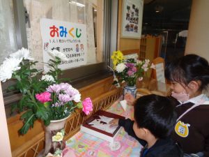 保育園からのお帰りの時には、手作りのおみくじを引いて帰りました。