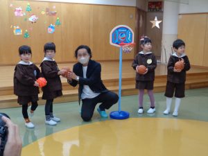 そのお店が、特定の商品の売り上げに応じて、新潟市の保育園にバスケットボールセットを贈呈する という取り組みの第1号として、第二はじめ保育園を訪れてくださいました。