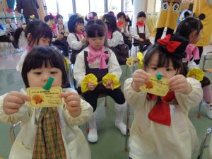 最後に、元気いっぱい歌ったみんなに参加賞をプレゼントしました。