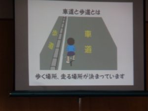 交通安全教室では、信号についてや道路の歩き方についてのお話でした。