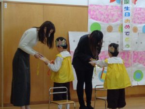 メッセージもお母さん方から言っていただき、照れた顔のお誕生児さんでした。