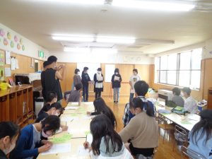 園児も含めてお集まりをした後には、得意なこと、好きな勉強、好きな給食、将来の夢を書いて、発表してもらいました。