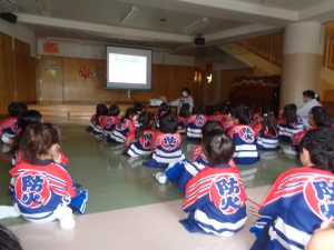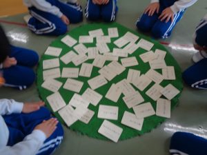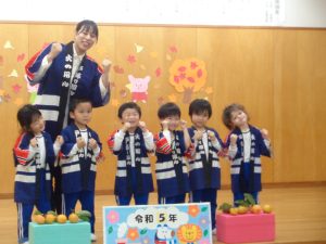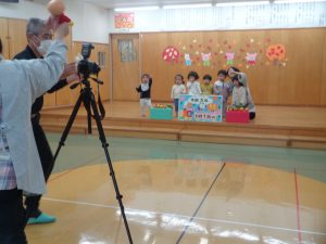 2023.11.08 日々の様子 クラス写真と幼年消防クラブ 昨日になりますが、クラス写真と幼年消防クラブ・交通安全教室でした。 今回のクラス写真、3歳以上児さんは幼年消防クラブのはっぴを着て撮りました。 0,1,2歳児さんもホールで。 カメラの後ろでは、みんながカメラを向くように、先生たちがぬいぐるみなどで声をかけています。 撮影の後は、幼年消防クラブ・交通安全教室・カルタ会でした。 カルタ会 その後、年長さんは、最近よく楽しんでいるドッチボールを楽しみました。