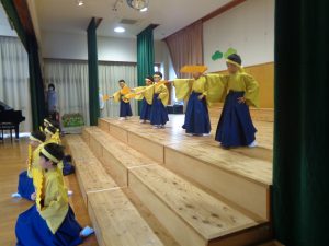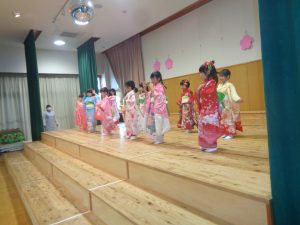 和服姿で凛々しさと、おしとやかさの年長さんでした。他のクラスもみんな張り切って素敵なステージでした。