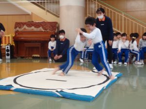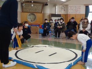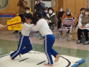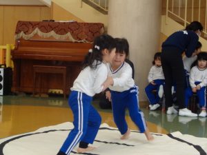 今日は3・4・5歳児さんのすもう大会でした。年齢ごとに男女別にトーナメント戦です。