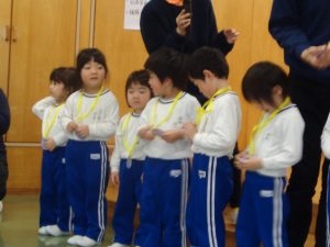 各年齢の1~3位のお友だちが園長先生からメダルを掛けていただきました。