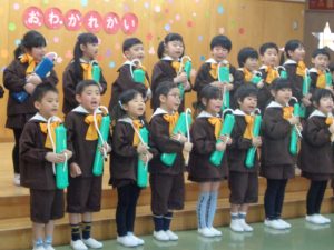 ばら組さんが入場し、園歌や今月の歌「思い出のアルバム」を歌った後は、ばら組さんのインタビューです。