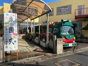 担任の先生が手作りしたコサージュを胸に付けた卒園児さん、式は滞りなく進み、卒園証書を渡すことができました。