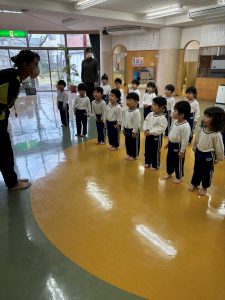 2024.04.10 日々の様子 HAC(体育教室) 昨日、9日にはHAC(ハック・体育教室)がありました。3歳児のあやめ組さんは、初めてのHACでした。 カワイ体育教室の先生とも”初めまして”でしたが、明るく元気な講師の先生に魅了され、笑顔・笑顔で取り組んでいました。 運動会でもする組体操も教わりました。 元気な体でたくさん運動を楽しみましょうね。