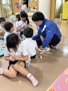 一緒に遊んでもらったり、各クラスで折り紙の制作のお手伝いもしてもらいましたね。