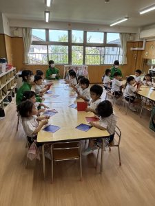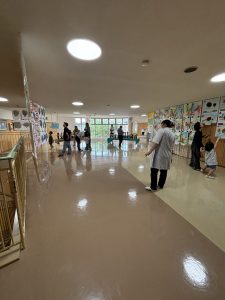 2024.10.02 日々の様子 展示会・職場体験 先週の土曜日には展示会がありました。 世界 をテーマに各クラスで作品を作りました。 日本・中国・オランダ・アメリカ にちなんだ作品を作り、ご家族で見に来ていただきました。 くじ引きやお菓子釣りも楽しそうでした。 そして今日は、藤見中学校の職場体験で中学生が来てくれました。 合奏を発表したり、3歳児さんで一緒に折り紙をしました。 かわいかった、元気過ぎる、癒された との感想でした。ぜひ、保育士を目指してくださいね。