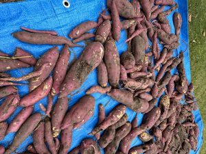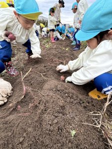 力を込めてさつま芋の周りの土をのぞいていき、いろいろな大きさの芋が掘れました。