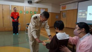 それぞれのお話をお聞きし、子どもたちからの質問にお答えいただいたり、手作りの感謝状をお渡ししました。
