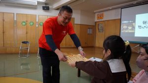今年のお客様は、佐渡汽船さんと栗山米菓さんでした。自分たちが住んでいる新潟に関係するお仕事のお話を子どもたちに聞かせたいと思い、お願いしました。
