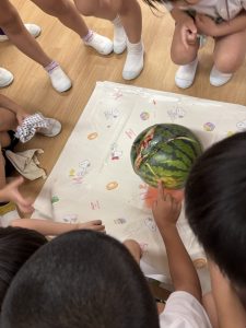 みんなで食べておいしかったですね。この後園庭で花火を見て19時にさようならでした。🎆
