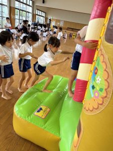 今日はウキウキツアー(ミニ遠足)でした。ひまわりホールへ行き、楽しみにしていたふわふわドームで遊びました。
