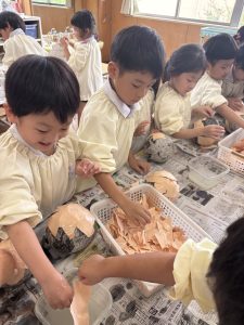 「だいぶ固いから大丈夫かな!」と出来上がりを見定める言葉も担任のようです。