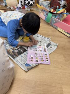 それを見たばら(年長)さんが、自分たちも何か作りたいとのことで、ばら組さんはステッキを作ることになりました。