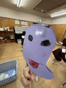 10月31日のハロウィン当日、きく組(年中)さんが、自分でお面を作って、保育園を練り歩いていました。ABCで習った「ハッピーハロウィン」「トリックオアトリート」の言葉を使って、担任の先生があらかじめ準備して、先生たちに配っておいたキャンディー(作りもの)をもらって楽しんでいました。