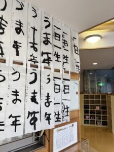 新年の書き初めを玄関に飾りました。