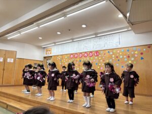 子ども達も保護者の皆さんも職員もみんなが、笑ったり、感動したり、涙もあり、よい会になりました。卒園式までもっともっと思い出を作りましょうね。
