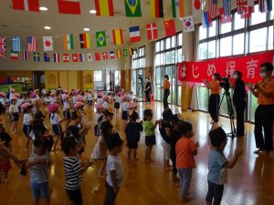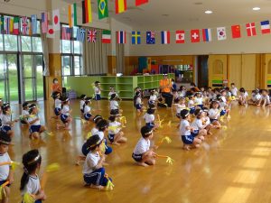 たんぽぽ・さくら組の運動会が終わり、4歳児ゆり組の運動会の始まりです。