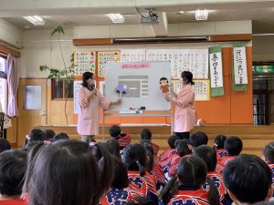 「ストーブの前に洗濯物など、燃えやすい物があったらお家の人に教えてあげてね」とお話しました。