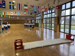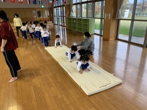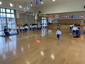 今日は、3歳以上児クラスがひまわりホールで“HAC”をしました